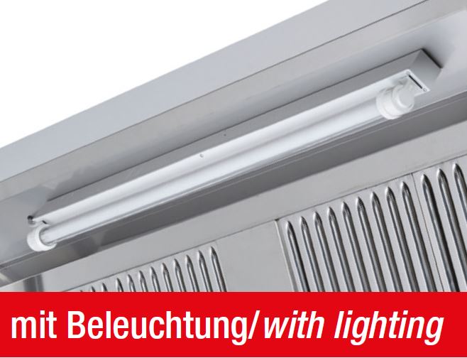 inkl. Beleuchtung, Flammschutzfilter, Fettablasshahn Motor und Regler! 4 X Edelstahl-Flammenschutzfilter: 50x40cm